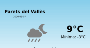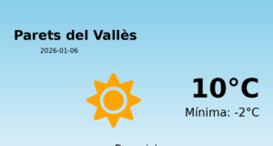 Predicció del temps per a Parets del Vallès: 15 de gener de 2026 En el dia d'avui, la predicció meteorològica per a Parets del Vallès...