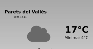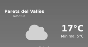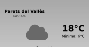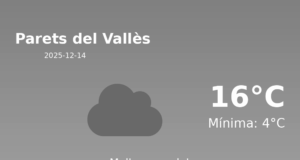 Predicció del temps per a Parets del Vallès: 15 de gener de 2026 En el dia d'avui, la predicció meteorològica per a Parets del Vallès...