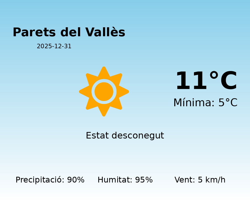 En aquest últim dia de l’any, Parets del Vallès es prepara per a unes condicions meteorològiques força humides i inestables. A continuació, t’oferim una anàlisi detallada de què pots esperar durant el dia d’avui.